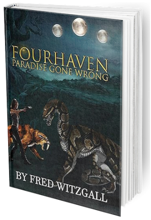 In this dark humor SF adventure, Fordy is a four-dimensional sociopath, an outlaw among his own kind. He decides to play god with Earth humans, creates a paradise world called Fourhaven, and recruits — or kidnaps – hundreds of people to populate it. Almost from the start, the plan is a disaster for everyone concerned.